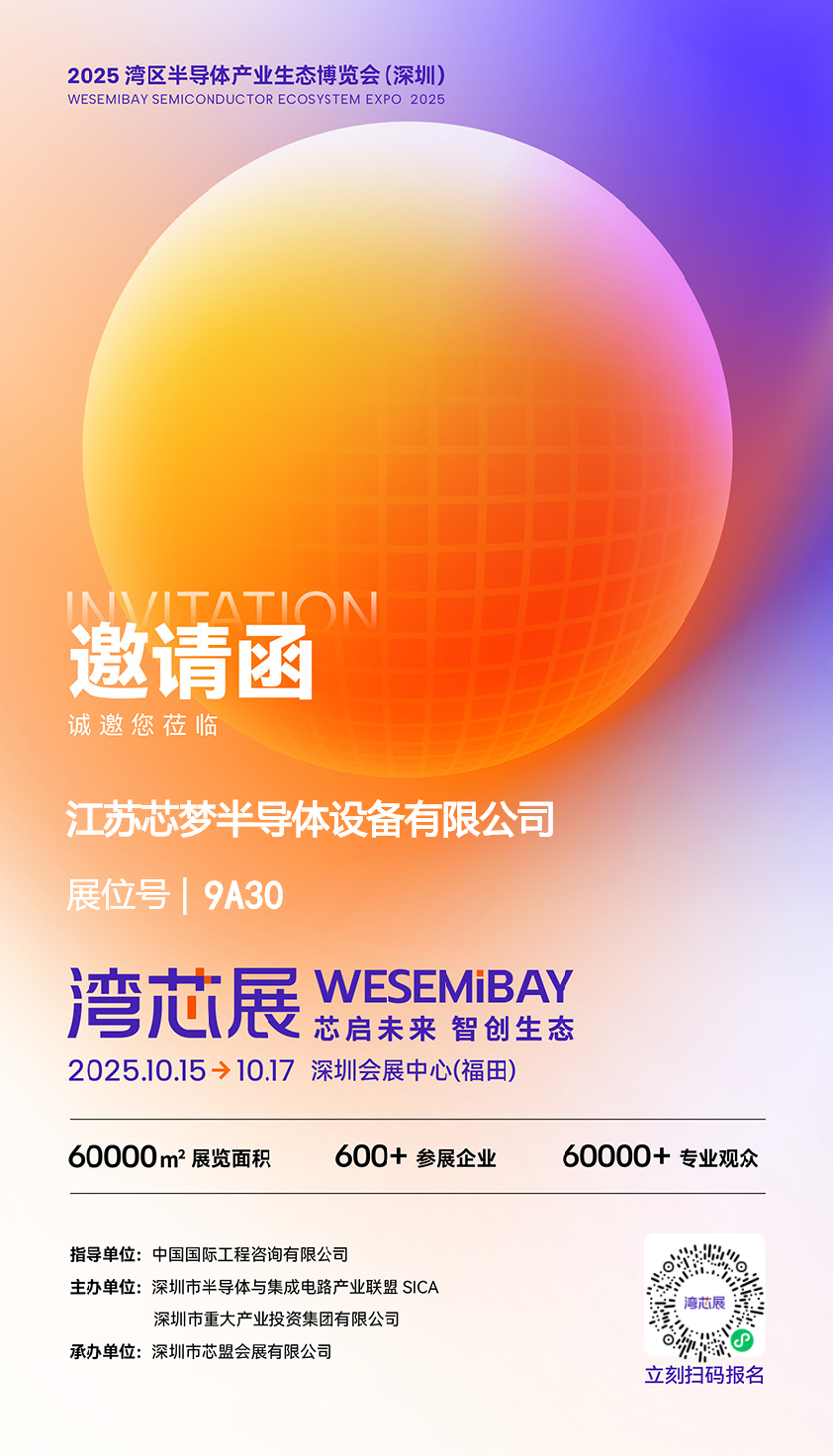 江蘇芯夢邀您相聚2025 灣芯展—展位9A30 2025-09-06 16:22 531 | 資訊動態(tài) 上一篇:熱烈祝賀!芯夢高端設(shè)備首個海外訂單項目順利發(fā)貨! 下一篇:喜訊|江蘇芯夢獲批蘇州市第二十九批市級企業(yè)技術(shù)中心!